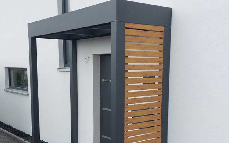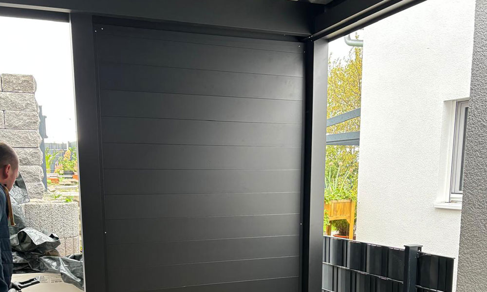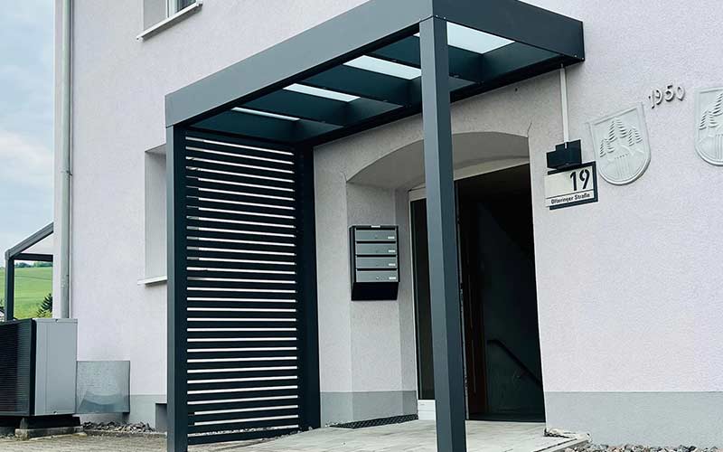Die Seiten-Elemente sind in verschiedenen Farben und Designs erhältlich. Ob klar strukturierte Lamellen, Sichtschutzplatten oder Kombinationen mit Glas- oder Edelstahl-Elementen – bei Berg-Überdachungen finden Sie passende Lösungen, die sich harmonisch in Ihr Wohnumfeld einfügen.
